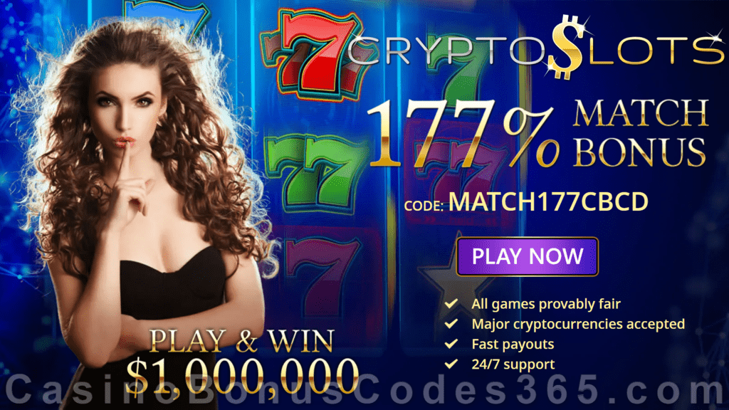 Match177cbcd is the exclusive code . 196% deposit bonus to play at cryptoslots. $77 free $77 free chips ; Check out the latest crypto slots no deposit bonus codes that accepting bitcoin and other crypto coins, also check out latest promo codes. This bonus is valid for new and existing players.